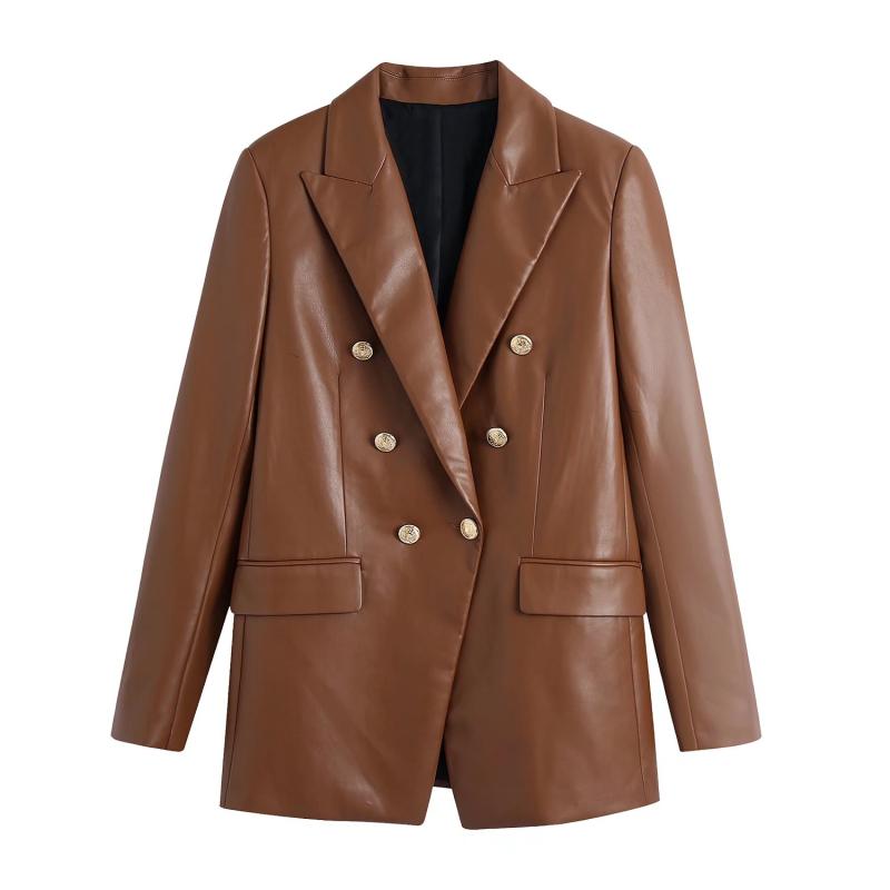 Women's Simple French Faux Leather Blazer